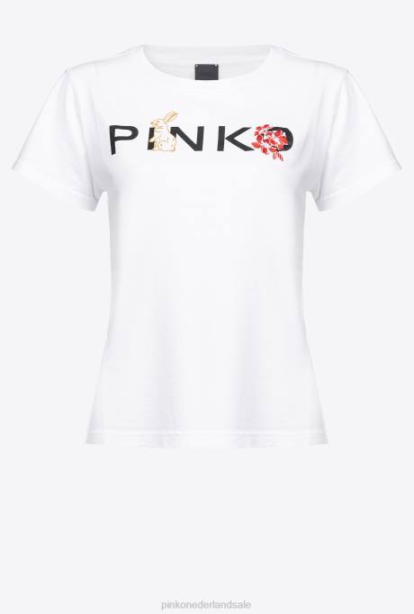 t-shirt | L488363 konijn t-shirt Pinko Helder wit
